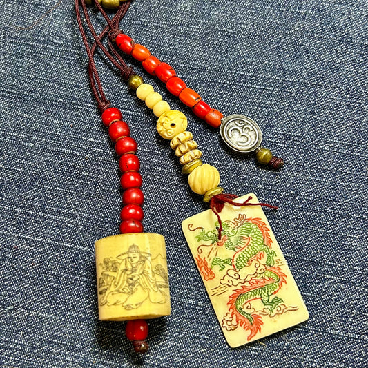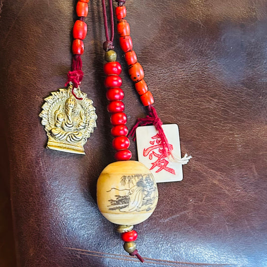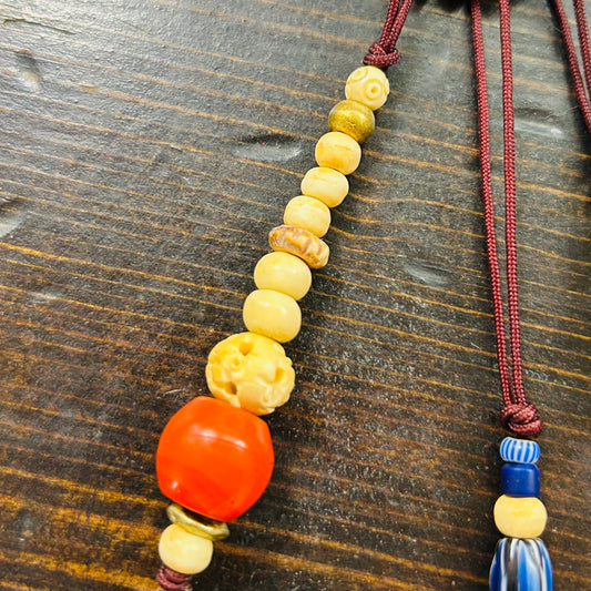 Antique Rare Sherpa Coral Bead Handbag Charm