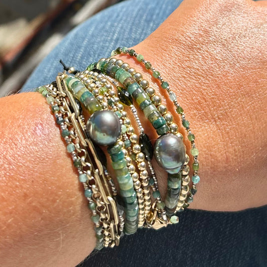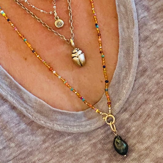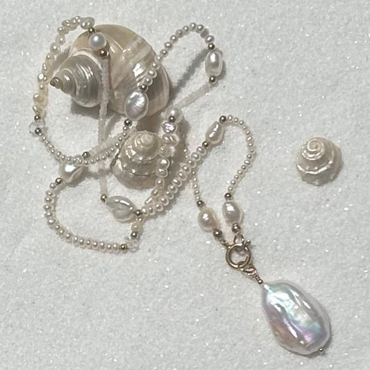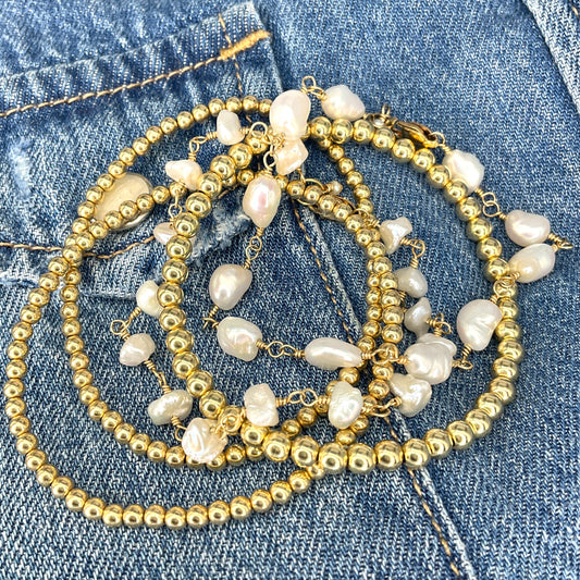 This collection celebrates the beauty of imperfection - with luminous freshwater pearls, organic shapes, and just a hint of golden glow. Think: modern mermaid meets bohemian goddess. Each piece is handmade in Los Angeles using baroque pearls, 14k gold-filled details, and natural textures that shimmer like sun on sand.